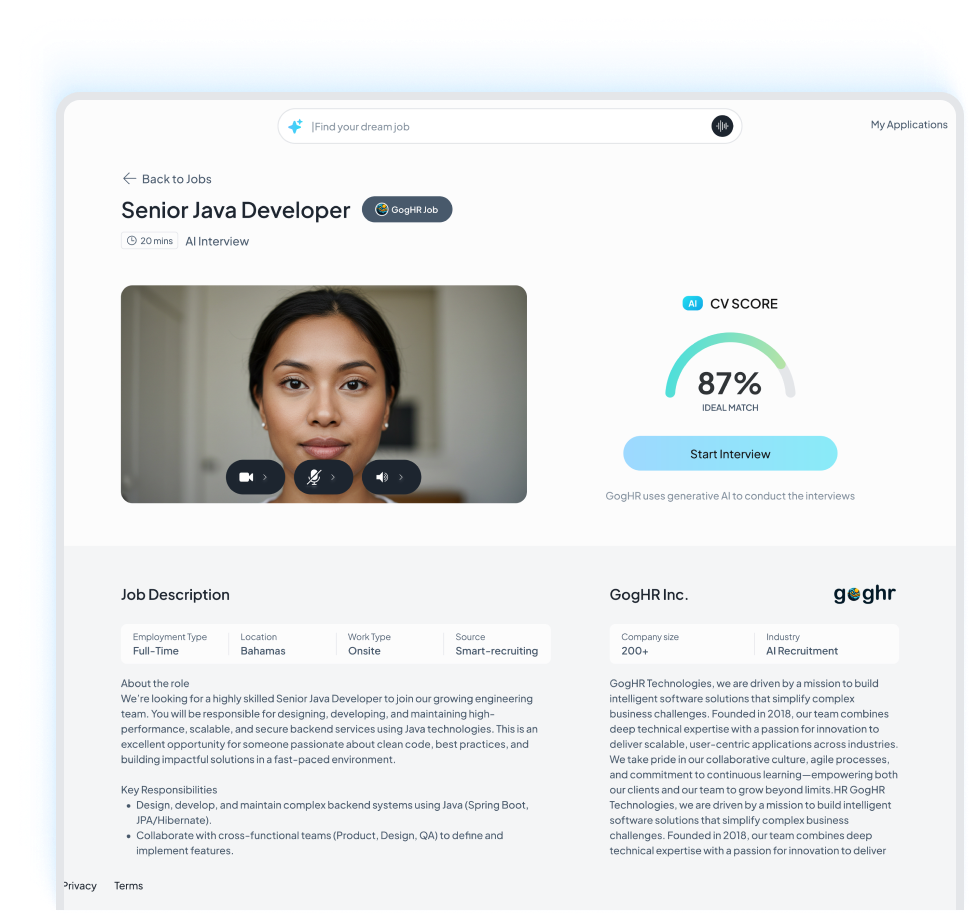 GogHR has made it a breeze to preping for Jobs with life-like AI interviewers. Also gifts insightful feedbacks that go a long way for me